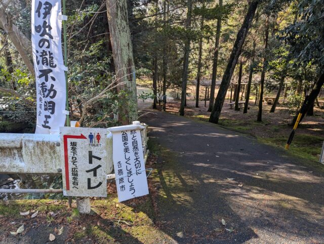 伊吹の滝の道路向かいにトイレのかんばんがあります。