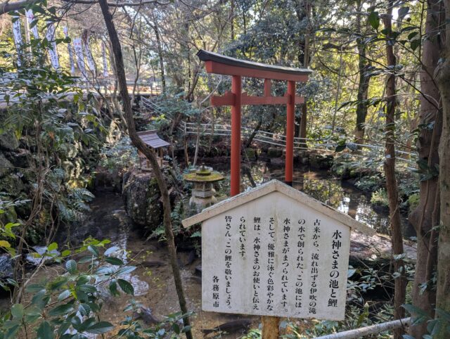 ちゃんと読まずに写真だけ撮りました。鯉いたのかな。「皆さん、この鯉を敬いましょう。」とのことです。