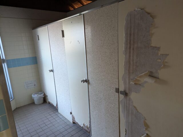 ただ、男女共用なので女性は厳しいかもしれません。しかも個室の中がめちゃくちゃ暗い。朝の9時過ぎでだいぶ明るい時間なのに暗い。