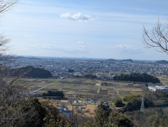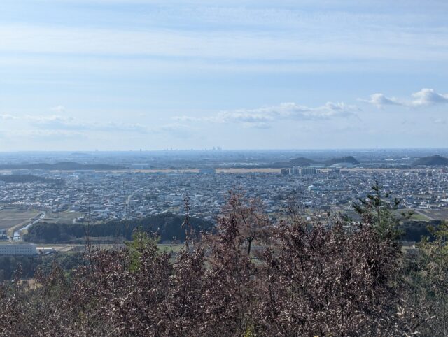 最初から階段が続く。すぐに展望がひらけてきてとても気持ちいい。名古屋のビル群までよく見える。これは絶景が期待できる。