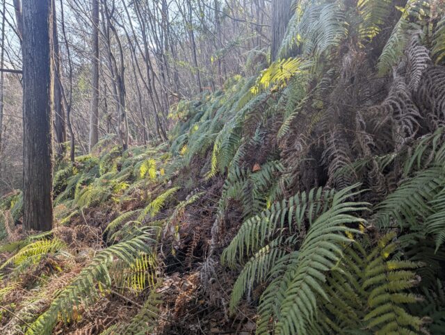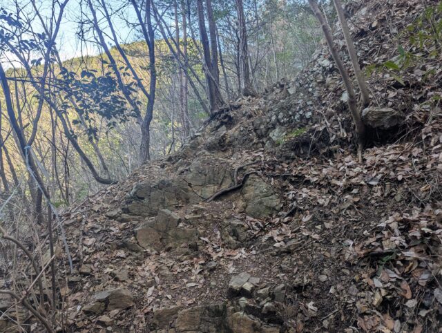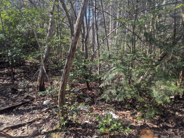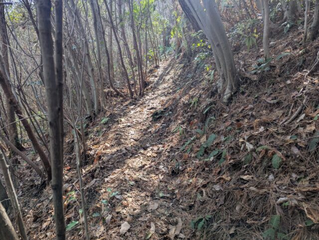 そして、細くて心細くなるの山道がずっと続きます。北山から下るときもこんな感じだったな。展望もないので正直飽きます。トレーニングだと思ってがんばります。
