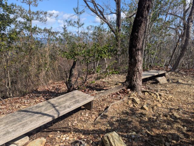 展望ポイントのベンチです。展望はよくはありませんでした。