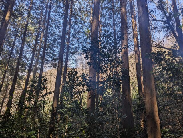 ぬかるんだ道を進みます。高い木がたくさんあるので夏場は涼しそうです。鳥の鳴き声が心地いいです。人が全然いないのでめちゃくちゃ自然を感じることができました。