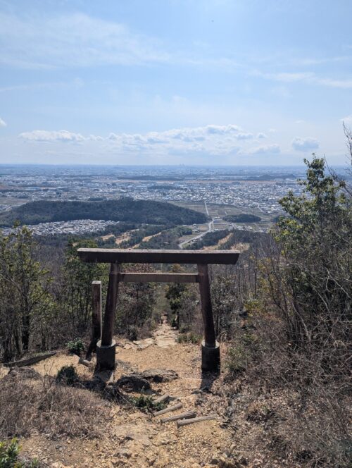 わかりにくいですが濃尾平野方面は絶景です。そしてこの景色に感動しています。